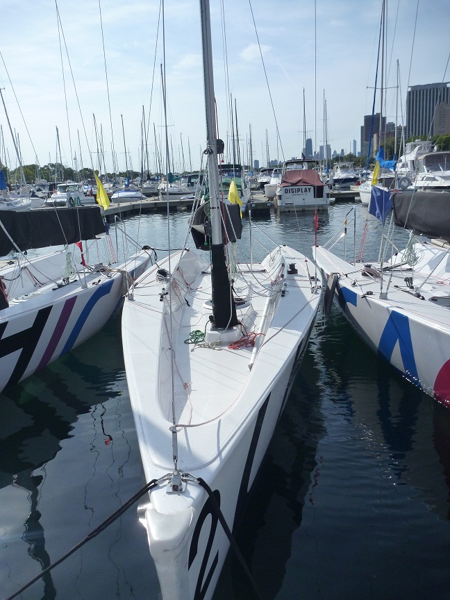 デッキレイアウトは、とても使いやすくスピンネーカーはバウのオープンスペースにショックコードで挟むだけです。