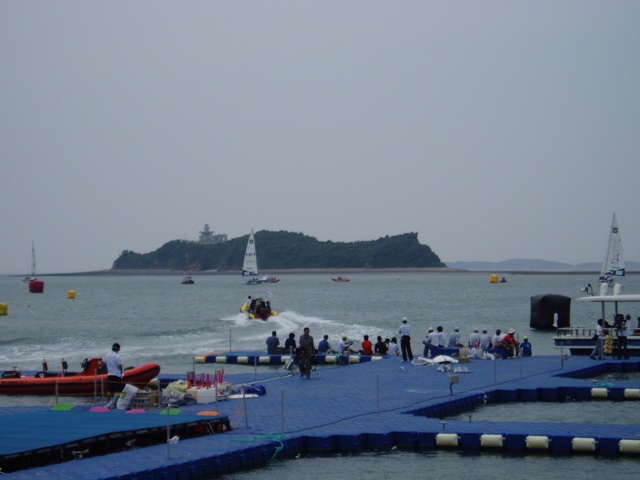 奥にスタートラインが見えます。桟橋の先にある黒マークが上マークでした。