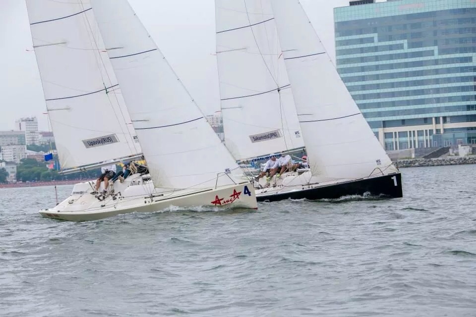 2戦目、プレスタートで主導権を取りプッシュし続けます。プラン通りスタート15秒前に相手へのプッシュ、フックが上手く決まり、ペナルティを与えさらに良い形でのスタート。