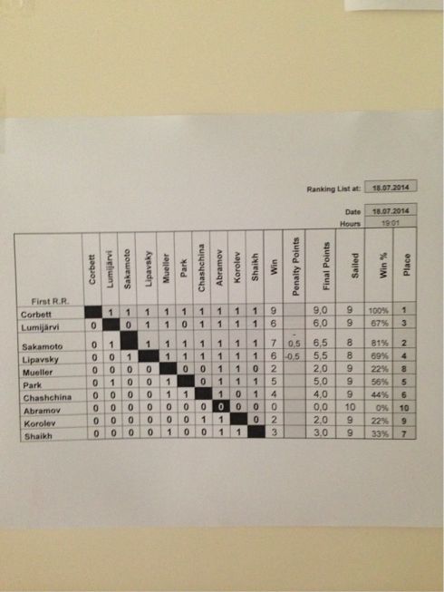 レース2日目、ラウンドロビンが引き続き行われました。結果は8勝1敗で2位となりました。